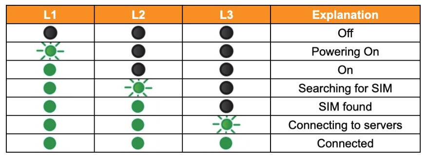 If a reboot has been conducted and the device does not exhibit all three LEDs on, please retain a photo record for support purposes.